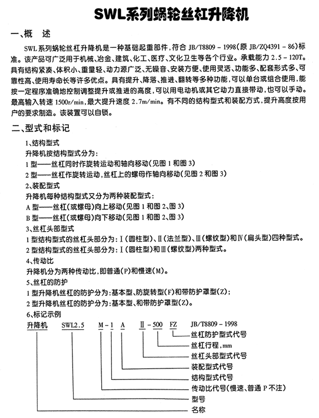 SWL、JWM絲桿升降機 提升重量0.5-120噸