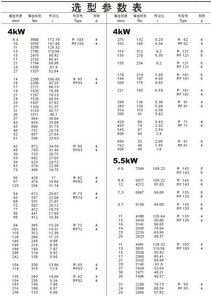 選型參數表4kW(續)和5.5kW
